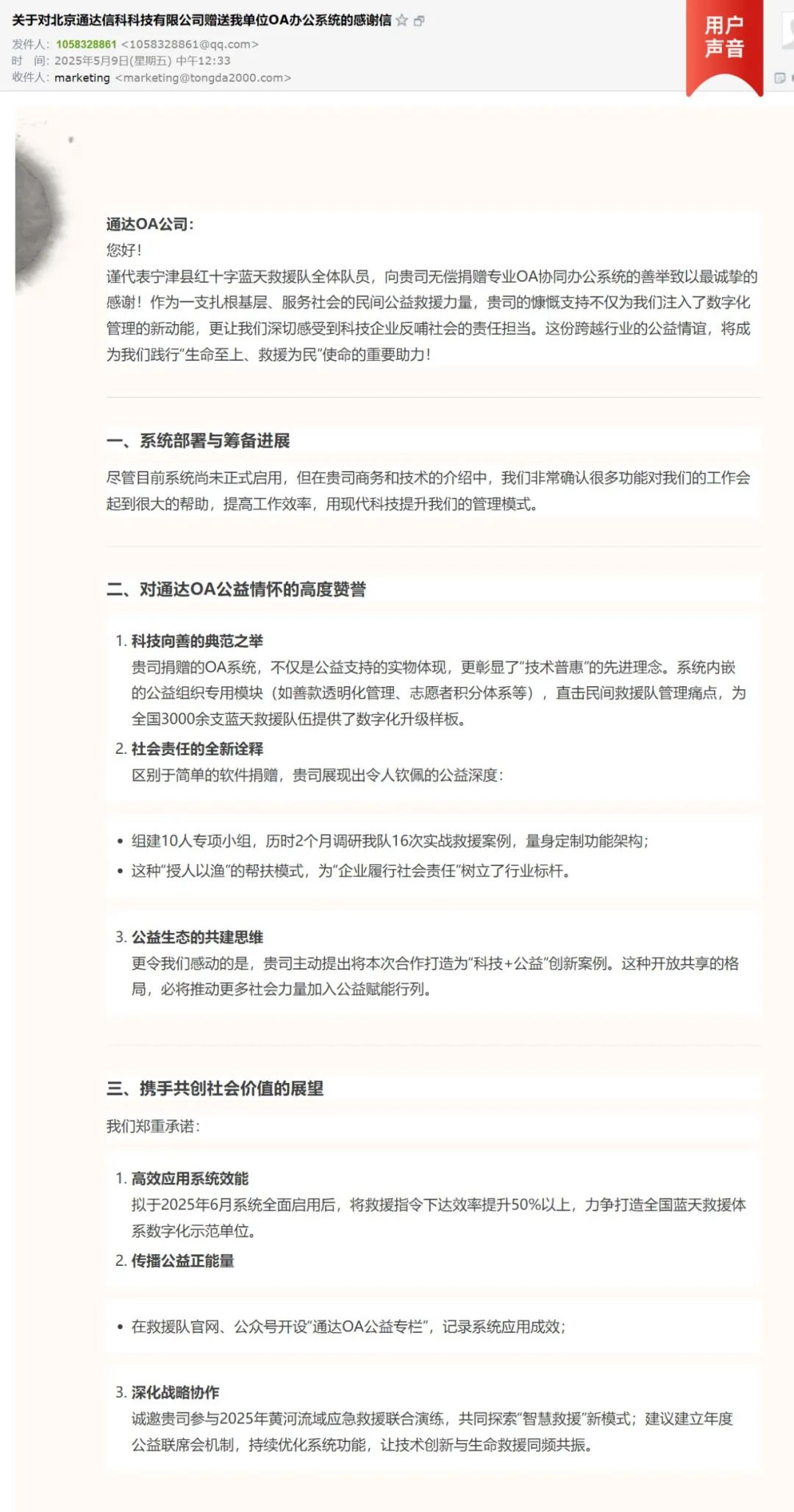 自「通达OA公益赋能计划」启动以来,得到了社会各界的广泛关注与支持。近日,河南省蓝天救援防灾减灾应急促进中心、山东德州宁津县红十字蓝天救援队、海南省留守儿童关爱志愿者协会等公益组织相继申请加入「通达OA公益赋能项目」,彰显了科技对公益事业发展的强大助力价值。