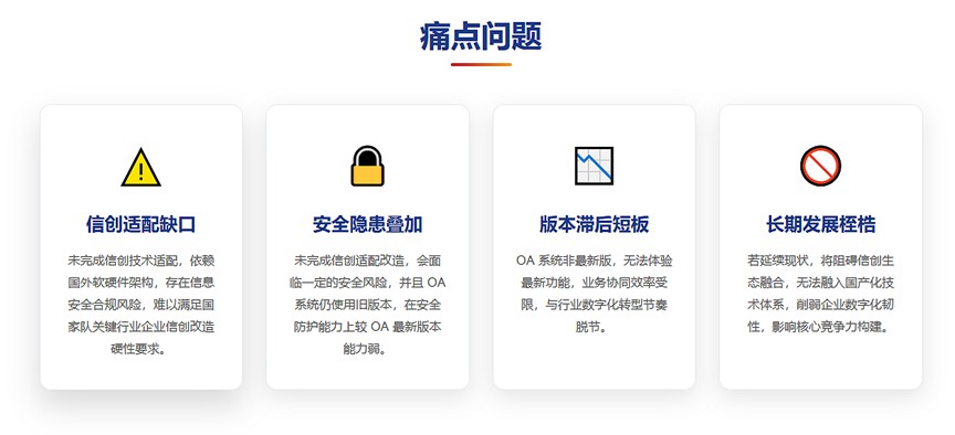XX期货使用的通达OA,未完成信创技术适配,因依赖国外软硬件架构,既存在信息安全合规风险,又因使用旧版通达OA系统导致安全防护能力薄弱;若延续现状,还将阻碍其融入国产化技术体系,削弱信息化韧性,安全与合规风险影响核心竞争力构建。