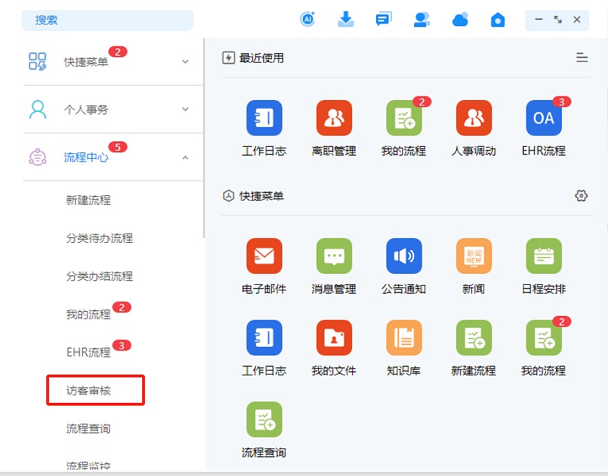 外部访客可通过网页或小程序在线提交预约信息,OA系统自动触发审批流程并路由至被访人或行政部门,大幅降低沟通成本、避免登记遗漏,并支持基于预设规则的自动审核,非敏感时段可自动通过。访客到访时,系统实时通过OA或企业微信通知被访人;签离时自动向前台及安保人员发送提醒,有效避免接待等待盲区,全面提升访客管理效率与接待体验。