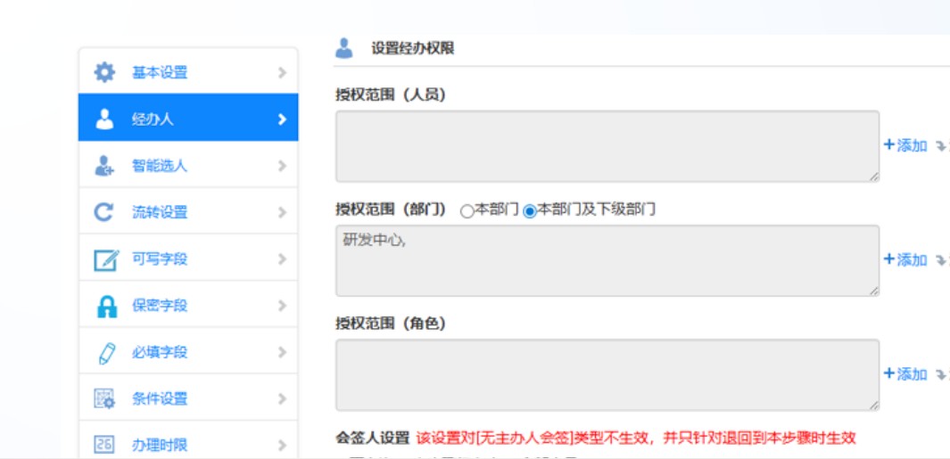 流程经办人现支持按部门层级精准指派。您可在设计流程时,将经办步骤指定到“本部门及下级部门”,系统将自动匹配对应人员,极大简化了跨层级协作的流程设置。