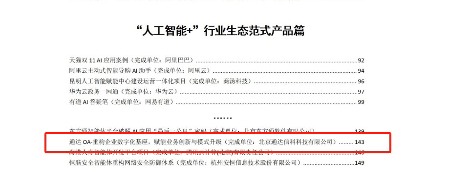 通达OA成功入编《“人工智能+”行业生态范式案例集》