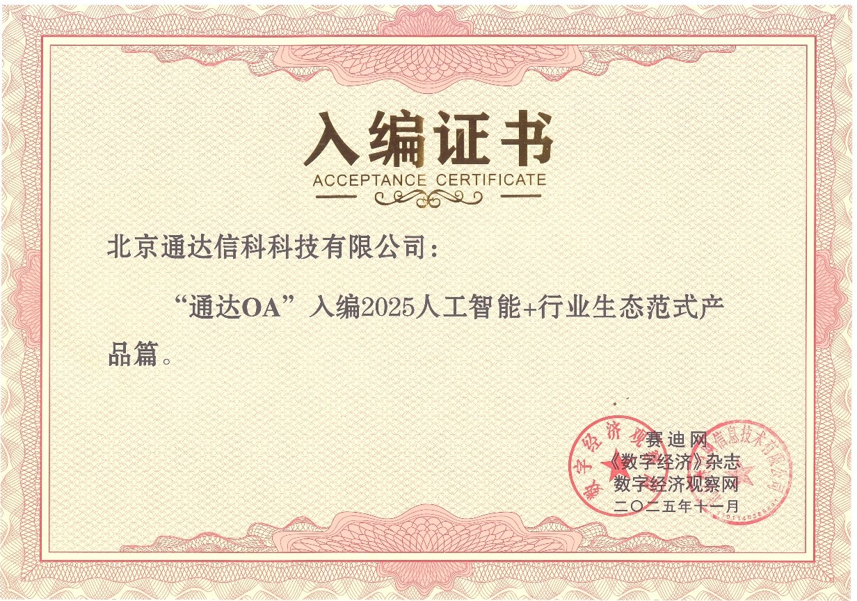 近日,北京通达信科科技有限公司的旗舰产品通达OA,凭借在“人工智能+”领域的深度融合与创新成果,成功入编赛迪网、《数字经济》杂志及数字经济观察网联合策划的《2025人工智能+行业生态范式产品》专题报道。这一荣誉标志着通达OA在智能化办公赛道的领先地位获得了国家级权威媒体与智库的高度认可,成为推动企业数字化转型的标杆性范式产品。