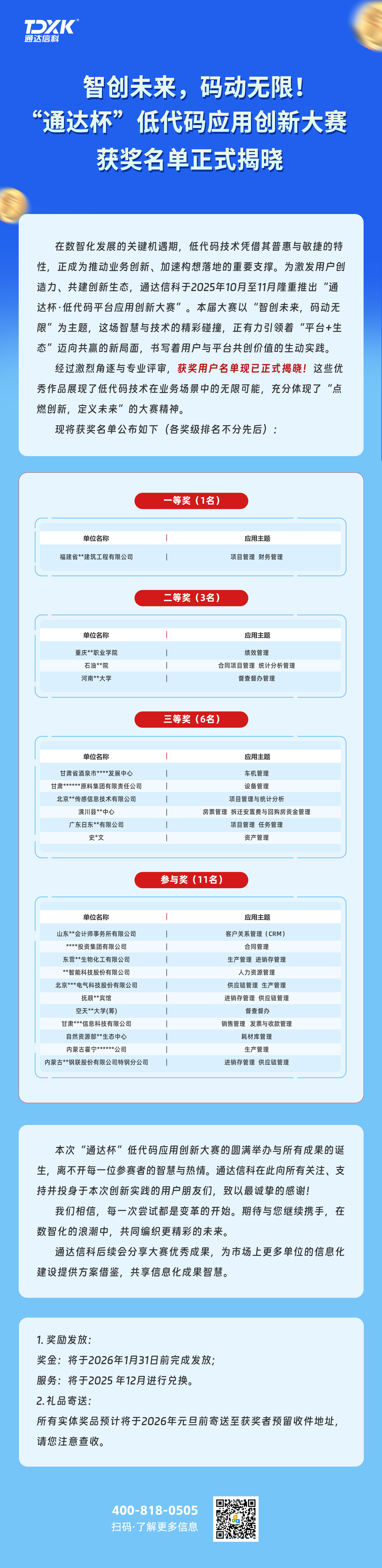 智创未来,码动无限!“通达杯”低代码应用创新大赛获奖名单正式揭晓