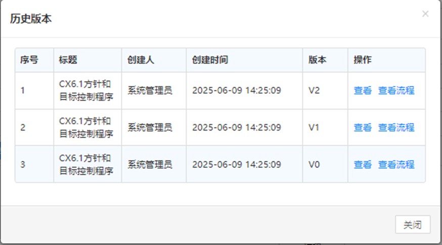每个文件均拥有完整、连续的历史版本记录,支持在现有基础上提交新版本。无论是新建文件还是版本更新,都需经过严格的线上审批流程。审批通过后,系统将自动完成版本信息的记录、标准化页眉页脚的生成及在线盖章,以此正式确立新版本,确保所有文件的迭代过程全程可追溯、变更受控制。
