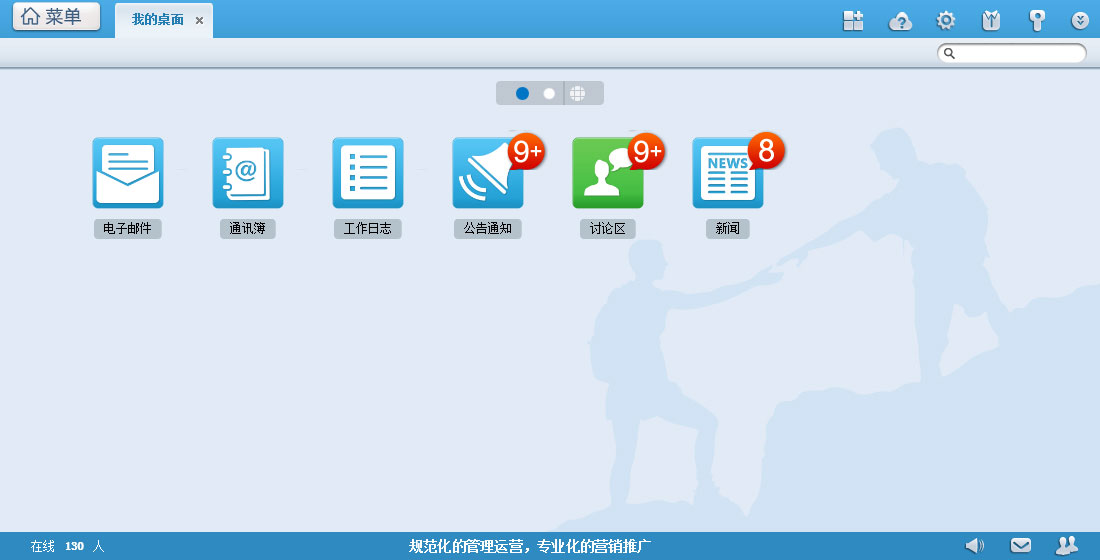 欢迎进入到通达OA2013增强版主界面,可点击悬浮手势图标处体验相应功能