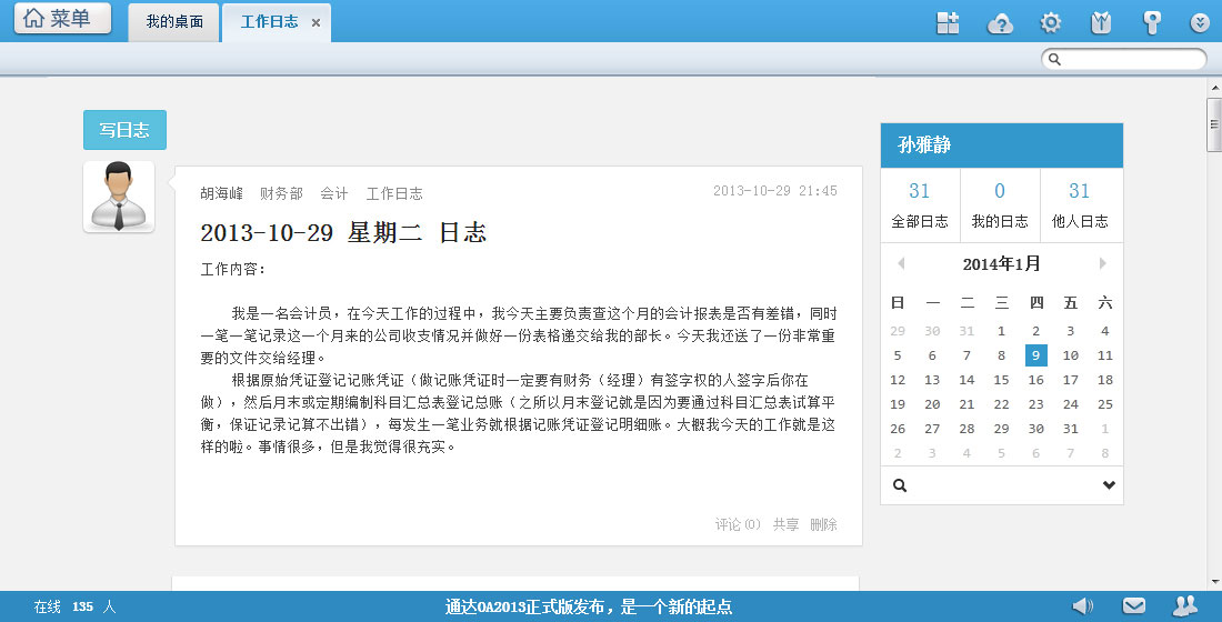 查询“会计”角色工作日志成功
