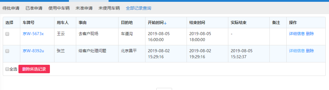 车辆使用由车辆调度人员在备注钥匙归还后才能结束。车辆超过结束时间未归还的,以实际归还时间为准。