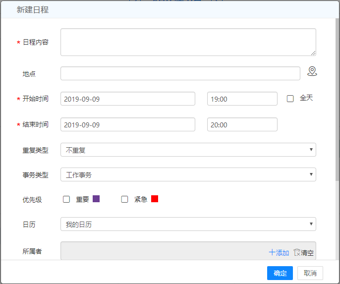 【共享范围】:添加人员即可将此日程共享给他人查看。