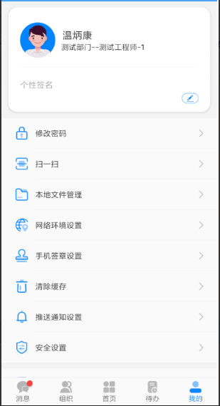 v11版android客户端,点击更多->手机签章设置,进入设置界面。