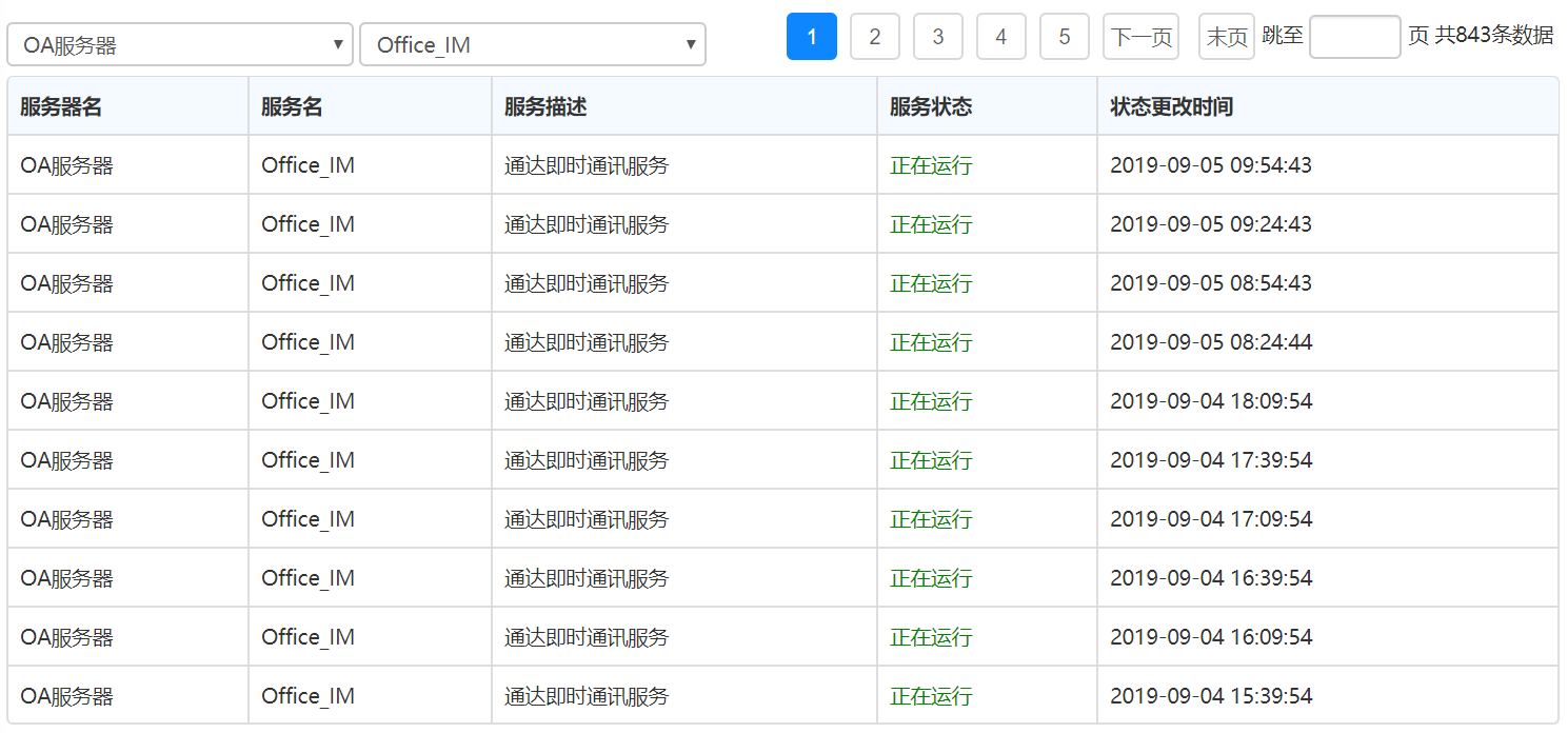 服务器状况信息,可以通过自动守护程序从每个服务器获取,管理员能看到每个服务器对应服务的状况,从而对整个OA系统的运行全面掌控。服务器运行状况。