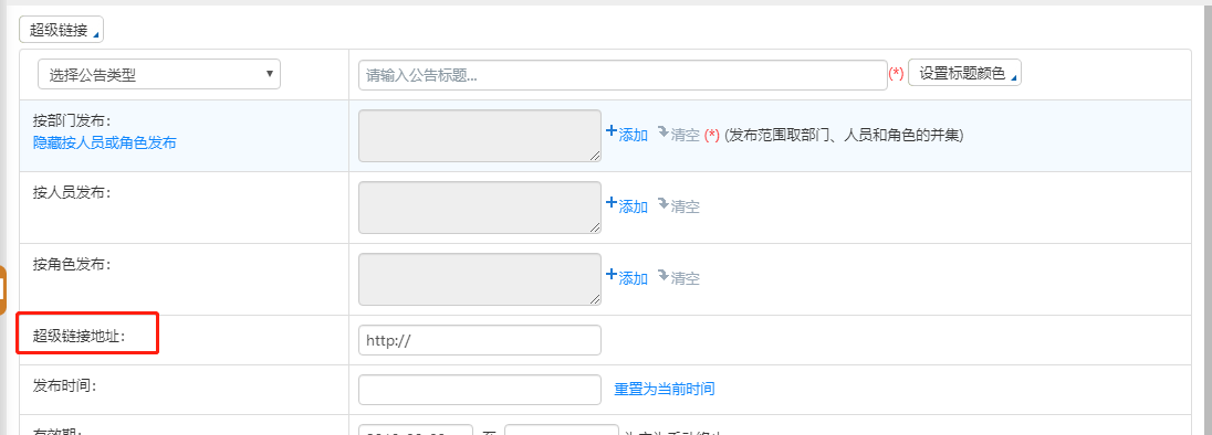 公告通知可以选择相应的有效期限,利用日期控件可以选择生效日期和失效日期。公告在达到失效日期以后自动会转为终止态。