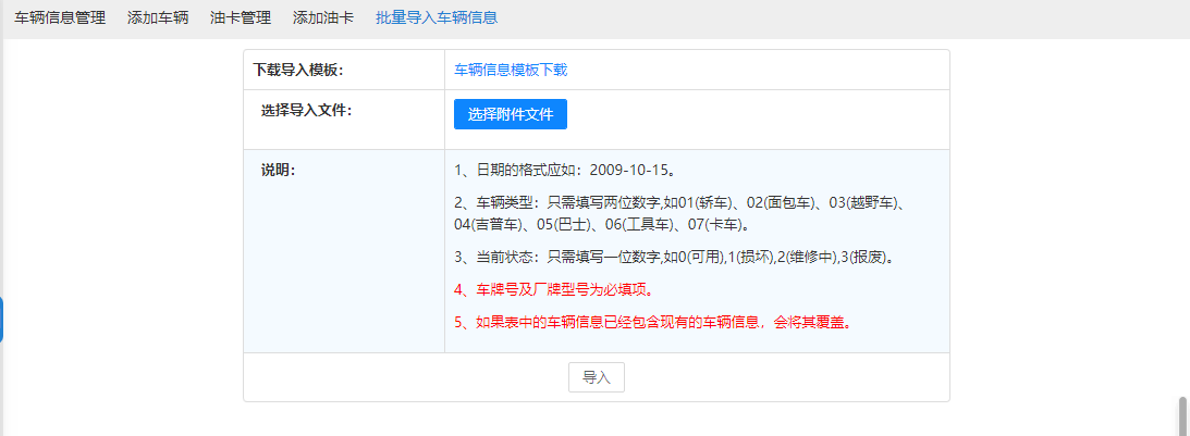批量导入车辆信息,可以将车辆信息以“Excel”表格形式批量导入。