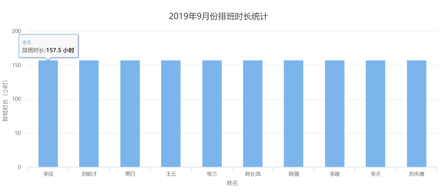 (3)自由排班中可根据部门或人员修改固定班次人员某月某日的班次,统计排班时长