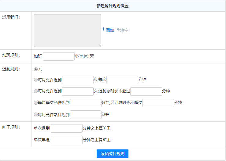 考勤统计规则可以根据部门设置加班倒休规则、迟到计算规则、旷工规则