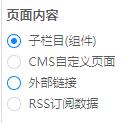 页面内容分为子栏目(组件)、CMS自定义页面、外部链接、RSS订阅数据四种,选择子栏目则可以将左侧组件区的组件拖拽至画布区进行页面布局,CMS自定义页面则可以在门户内容管理中通过富文本编辑器进行页面编辑,外部链接会直接在页面中加载被链接的页面进行展示,选择RSS订阅数据则会调取订阅数据以列表形式进行展示;