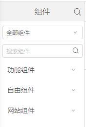 门户设计器内置三种组件类型,功能组件、自由组件、网站组件,可进行类型筛选,并根据组件名称进行搜索; 将组件拖入中间画布区后,选中组件后右侧属性区域会展示当前组件能配置的属性;