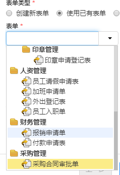 使用已有表单:前提是在建立流程之初需要先将其使用到的表单制作好,建立流程时才能选择上此表单。