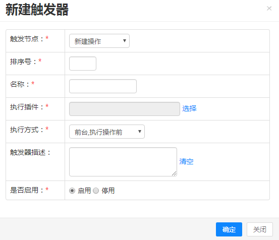 可以选择是否开启该引擎,开启引擎后用户在业务模块提交申请时会自动转入设置好流程,停用引擎后用户只能用业务模块提交申请,与流程无关。如上图: