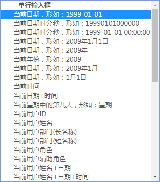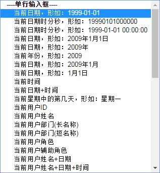 宏控件作用:系统数据库中的经常用到变量,如当前用户姓名,当前日期等,可以直接调用,不用您手动输入,提高填单速度,使得流程中心的表单填写更加智能与方便。比如,我们请假时,一般申请请假人都是当前登录用户,在表单智能设计器中,就可以用宏控件,取值为当前用户姓名。