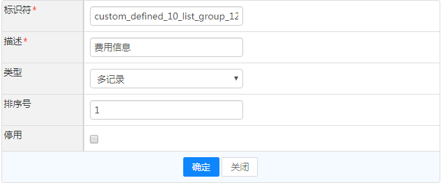 4.创建【费用信息】分组,选择的类型为“多记录”(类似于列表控件);如下图所示: