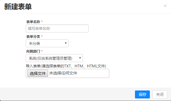 表单类型:提供三种不同类型选项;默认选择的是“创建新表单”。