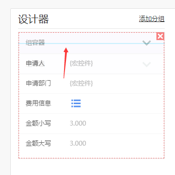 注:如果新建的【报销申请】流程已发起工作,则无法对分组中的字段进行删除。只能停用