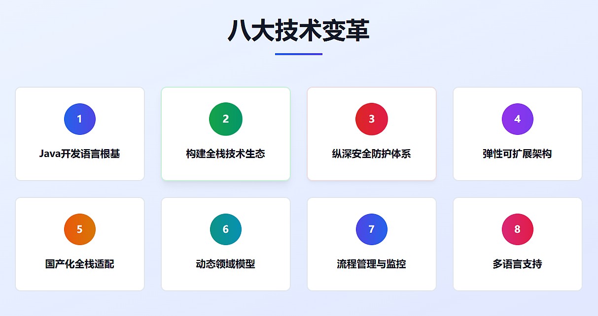 ② 技术生态应完整,能够支持复杂架构、中间件集成、多端访问,并具备高并发与高可用能力。