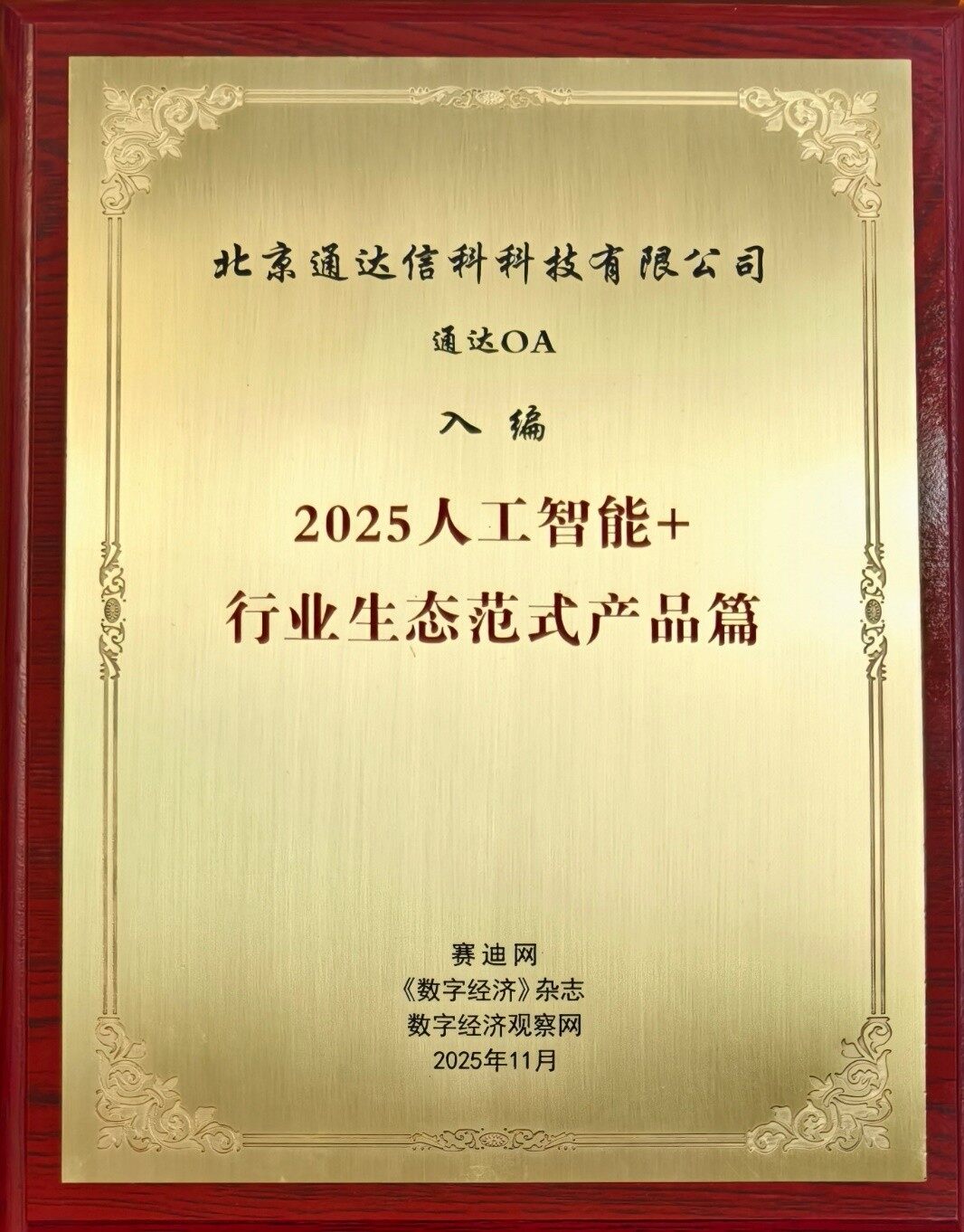 近日,北京通达信科科技有限公司的旗舰产品通达OA,凭借在“人工智能+”领域的深度融合与创新成果,成功入编赛迪网、《数字经济》杂志及数字经济观察网联合策划的《2025人工智能+行业生态范式产品》专题报道。这一荣誉标志着通达OA在智能化办公赛道的领先地位获得了国家级权威媒体与智库的高度认可,成为推动企业数字化转型的标杆性范式产品。