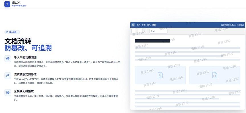 通达OA文档+页面双水印:精准防范数据泄露与篡改风险