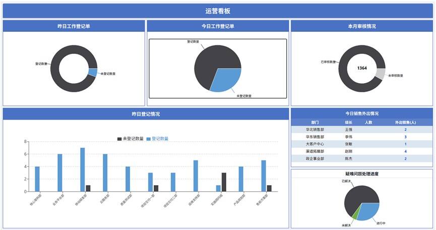 销售外出、客户跟进、项目推进、疑难问题处理等经营数据,业务虽相互关联,信息却碎片化分布在多处,统计困难、更新滞后,导致决策支持不足。