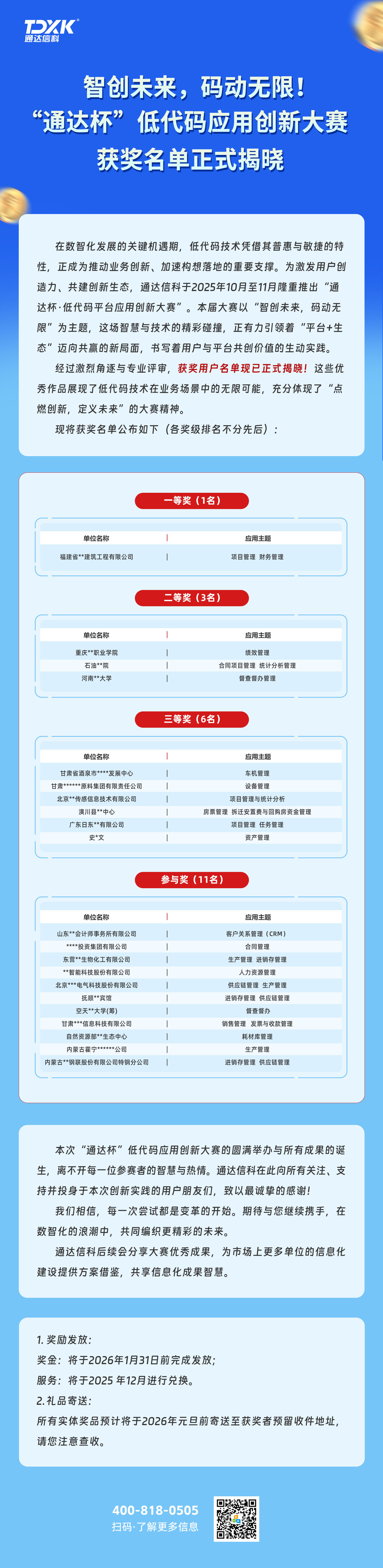 智创未来,码动无限!“通达杯”低代码应用创新大赛获奖名单正式揭晓