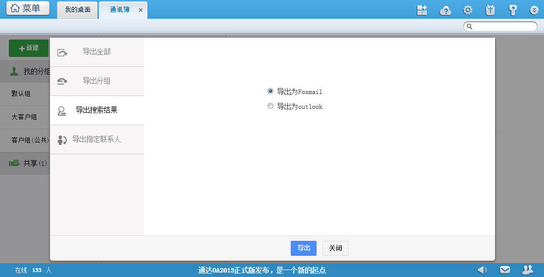 选择要导出的文件格式(文件格式支持:foxmail、outlook),点击导出即可