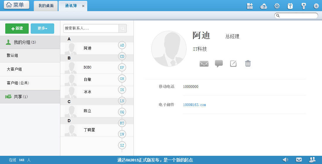 欢迎进入通讯簿主界面,鼠标闪动出为可体验项,让我带您感受新的奇妙旅程!