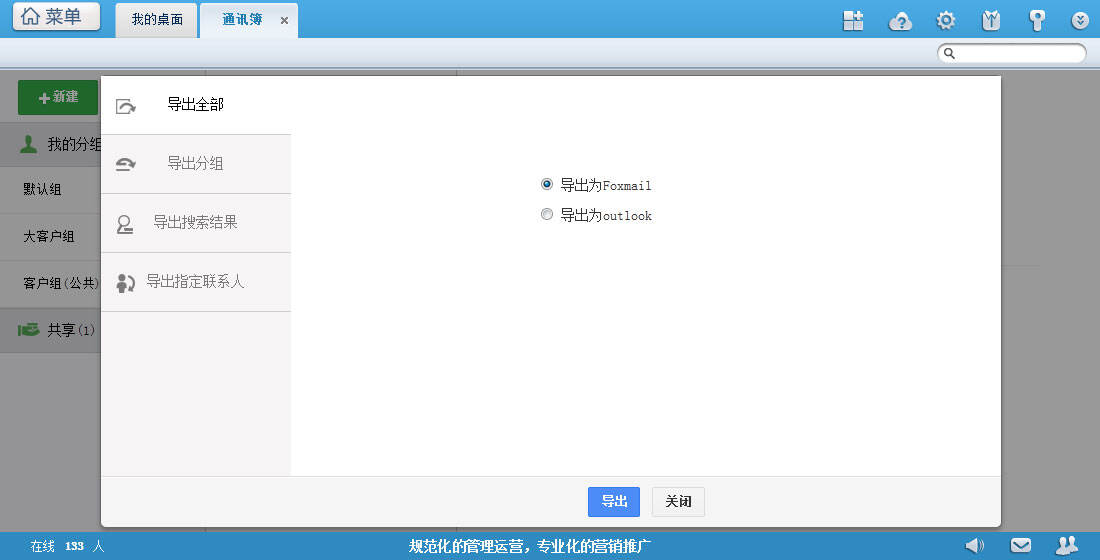 选择要导出的文件格式(文件格式支持:foxmail、outlook),点击导出即可