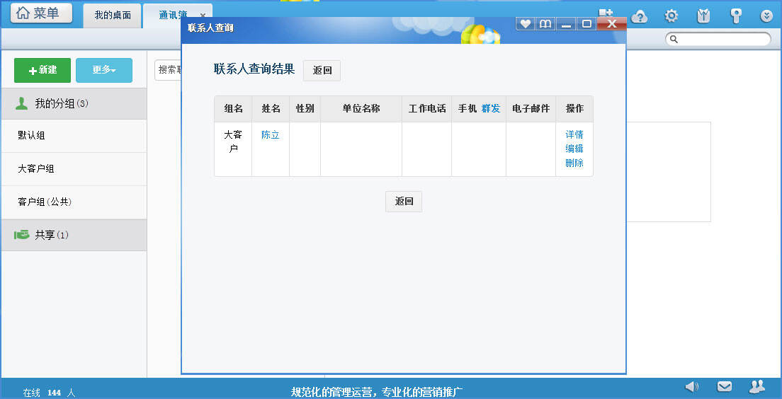 联系人“陈立”查询结果