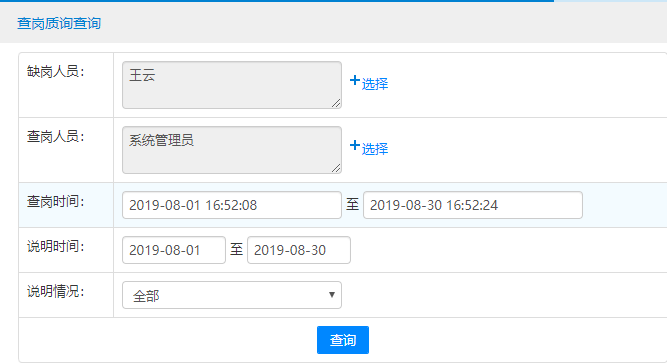 “查岗记录”的界面如下,输入要查看的日期,即可显示本人的查岗质询信息。