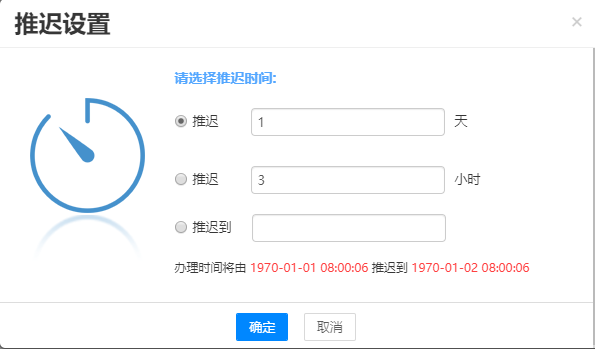 在推迟设置中,用户可以根据任务的紧急情况设置推迟的时间,分别可以按天推迟,按小时推迟,自行定义推迟到的某个准确时间。