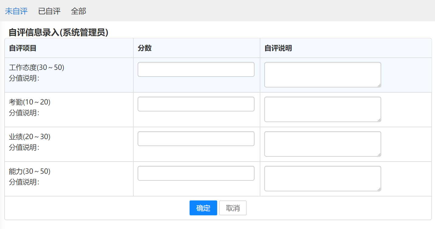 于需要被考核人先自评的考核任务,被考核人可以在此模块进行自评。