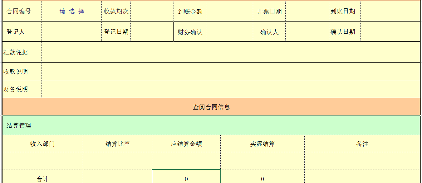 | 已结算总金额 | 回填 | 主管结算 | 保存触发 | 回填目标:签订合同 查找条件:合同收款.合同编号=签订合同.合同编号 回写条件:无 更新方式:已结算金额的更新表达式为 签订合同.已结算金额+本表单.到账金额;未结算金额的更新表达式为 签订合同.未结算金额-本表单.到账金额 |