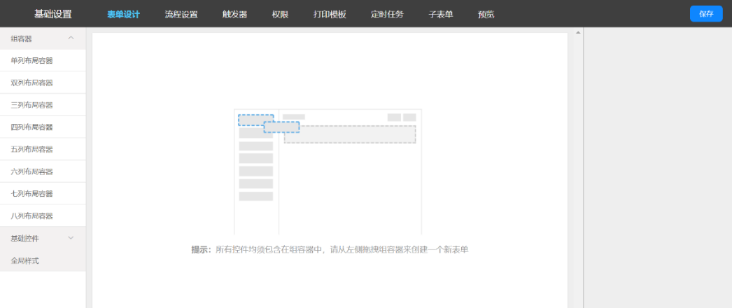 点击刚才新建的表单”基础设置”,进入表单设计界面如下图:
