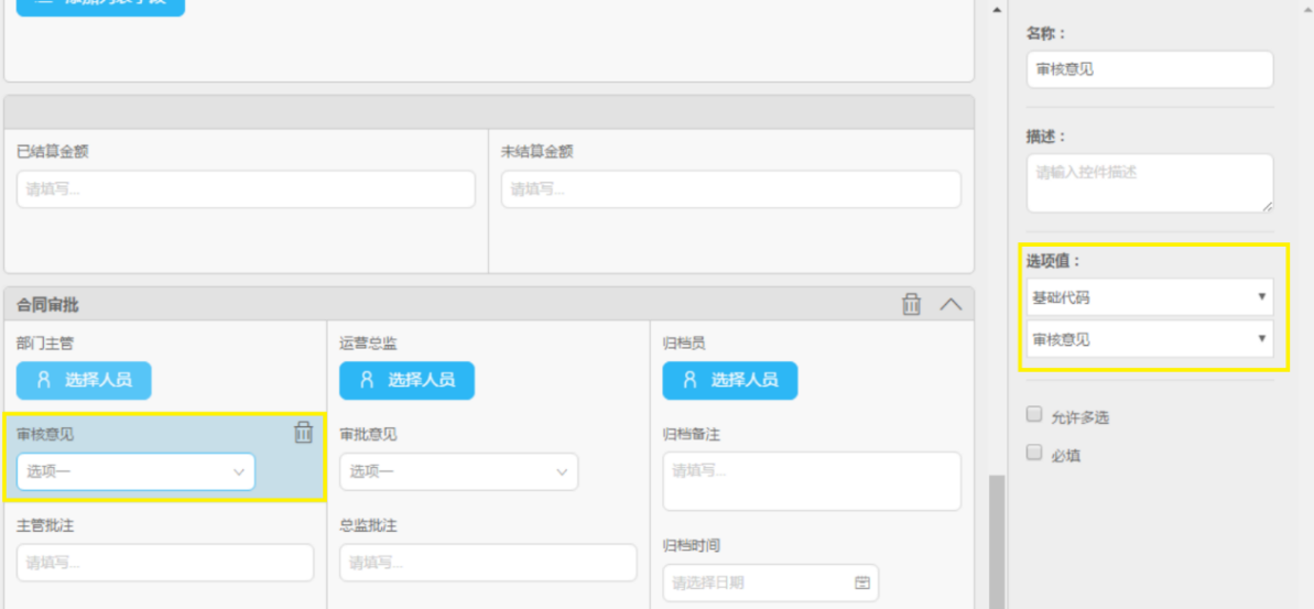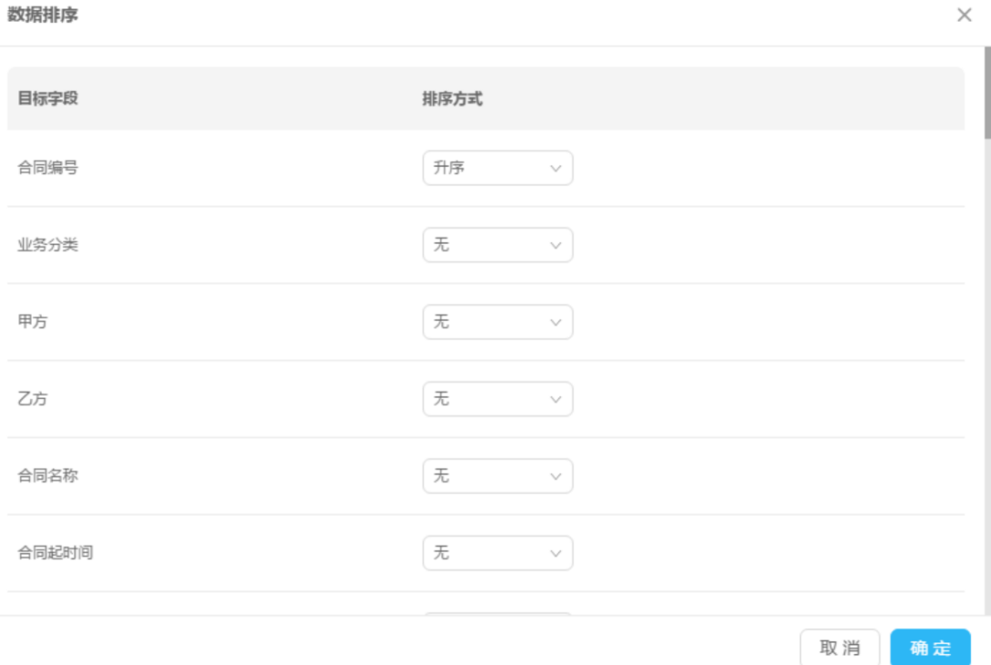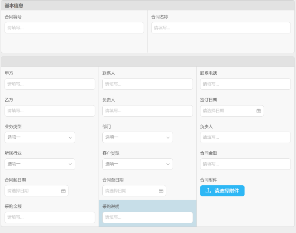 除了上述主要表单之外,合同管理还需要一个基础设置表单以录入一些基础信息,如下图:
