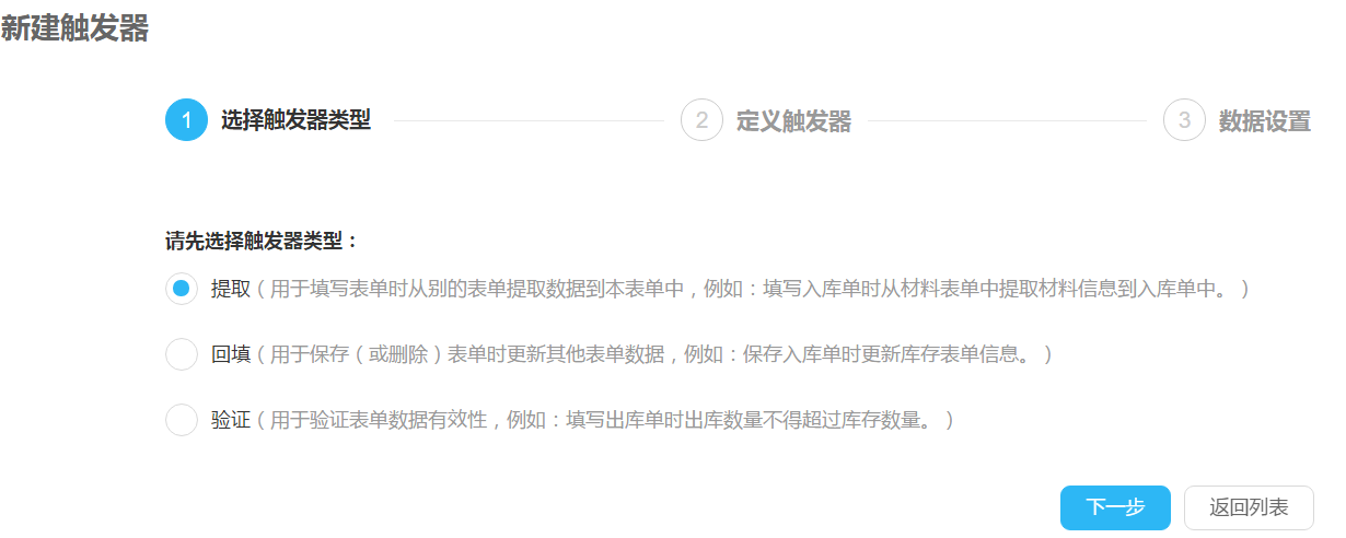 友情提示:回填触发器一般成对出现,一个用于保存时执行,另一个用于删除时执行。这两个触发器所执行的动作正好相反,即如果保存触发的动作是增加数量,则删除触发的动作则是减少数量;如果保存触发的动作是设置标志,则删除触发的动作则是清除标志。