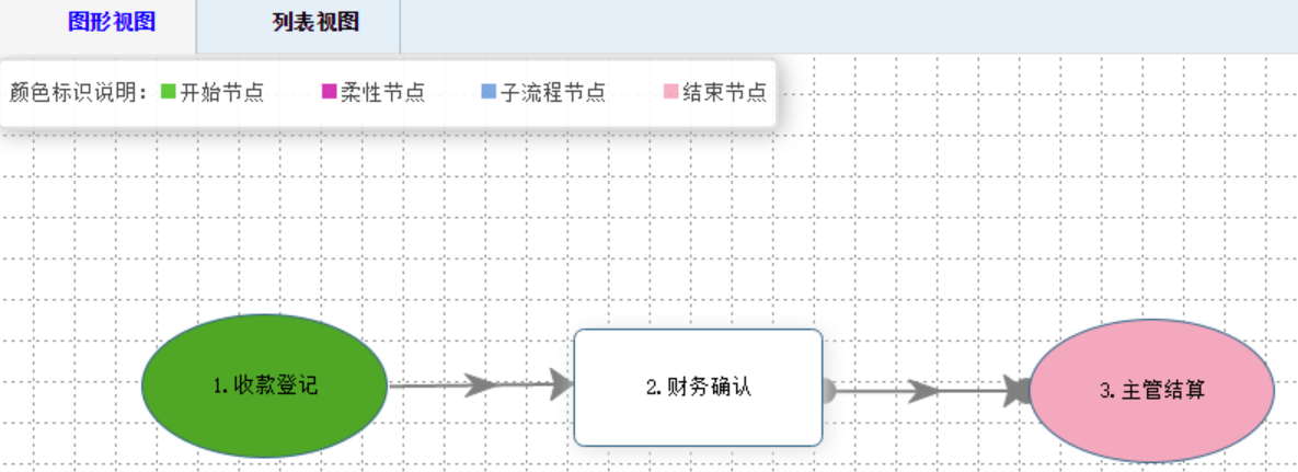收款审批过程:登记收款 -> 财务确定 -> 收入结算