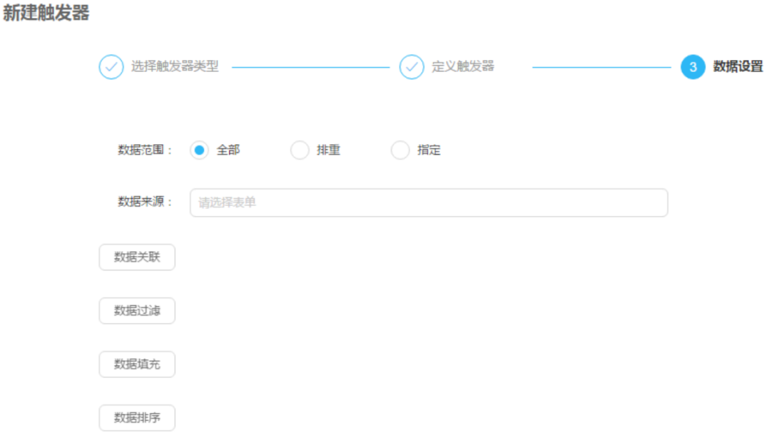 | 应收款周期 | 提取 | 所有步骤 | 新建触发 | 数据范围:全部