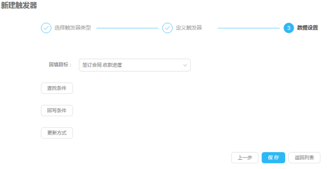 点击下一步,然后把回填目标定义为”签订合同.收款进度”,如下图: