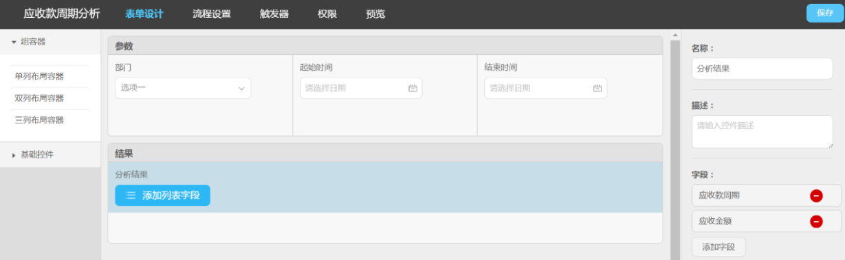 完成上述触发器设置之后,应收款周期分析定义全部完成。点击 预览 可看到应收款周期分析运行结果,如下图: