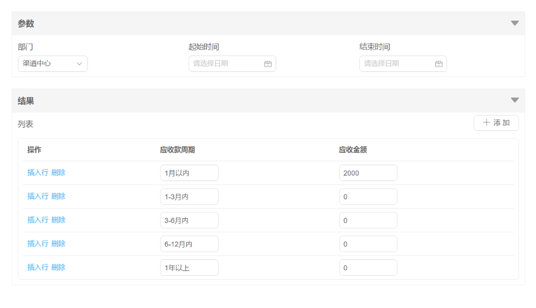 此外还需要一个分段信息表单以录入应收账款周期信息,表单样式从略。