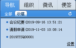 收藏: 可以将此工作收藏到自己OA的收藏夹里面,此收藏夹只显示在经典主题下,位置如下图: