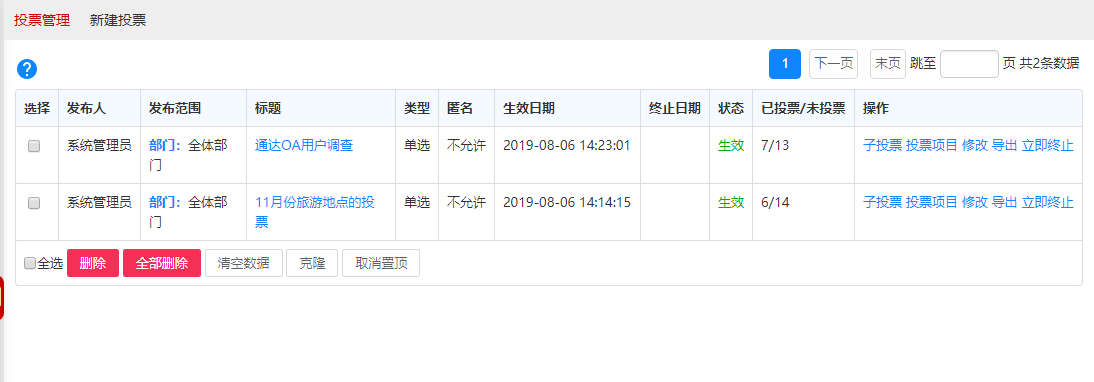 新建后在管理投票中可以查看到。