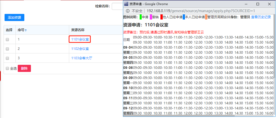 资源申请与管理主要是实现对单位内某些有限资源的占用情况进行快速申请和实时管理。